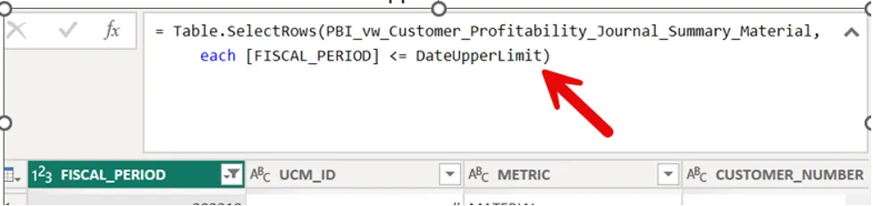 FilteredRows = Table.SelectRows(Source, each [FISCAL_PERIOD] <= MaxPeriod)