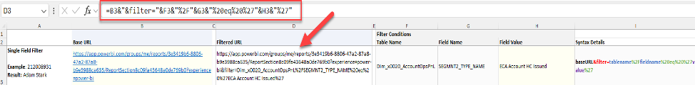 Column C “Filtered Result” is my Final result. I make changes to each column based on the requirement for example column F which is the table name has a space in the table name, converted table name “Dim AccountOpsPnL” to “Dim_x0020_AccountOpsPnL